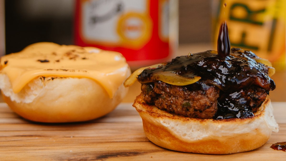 Sweet & Spicy SliderHouse seasoned ground beef patty, caramelized onions, pickles, American cheese, and our Sweet & Spicy sauce on a Hawaiian style slider bun